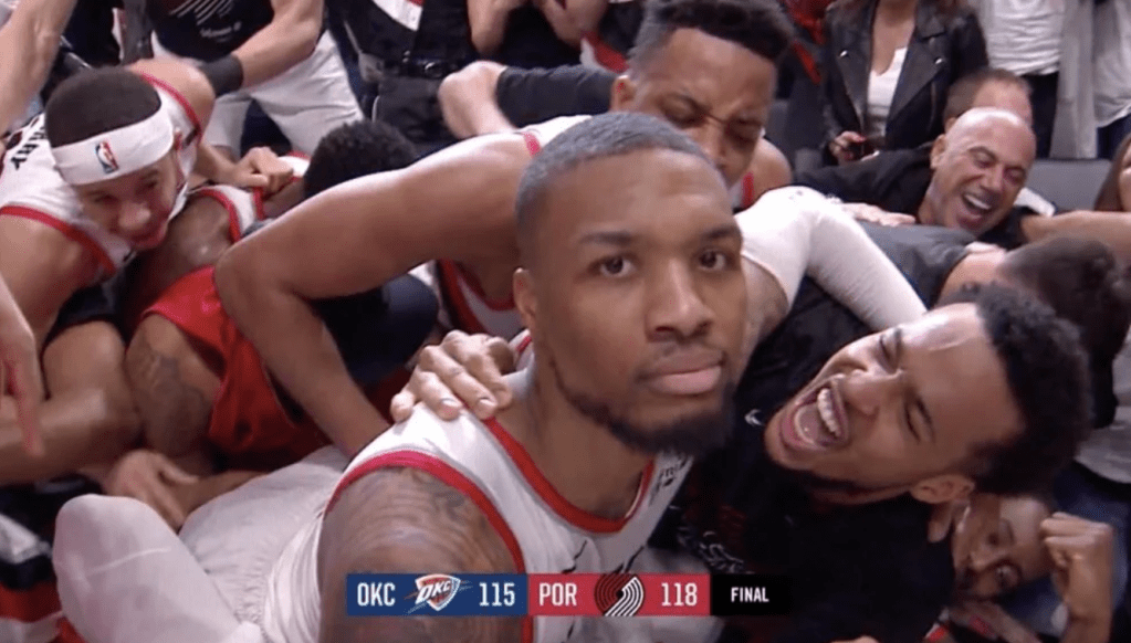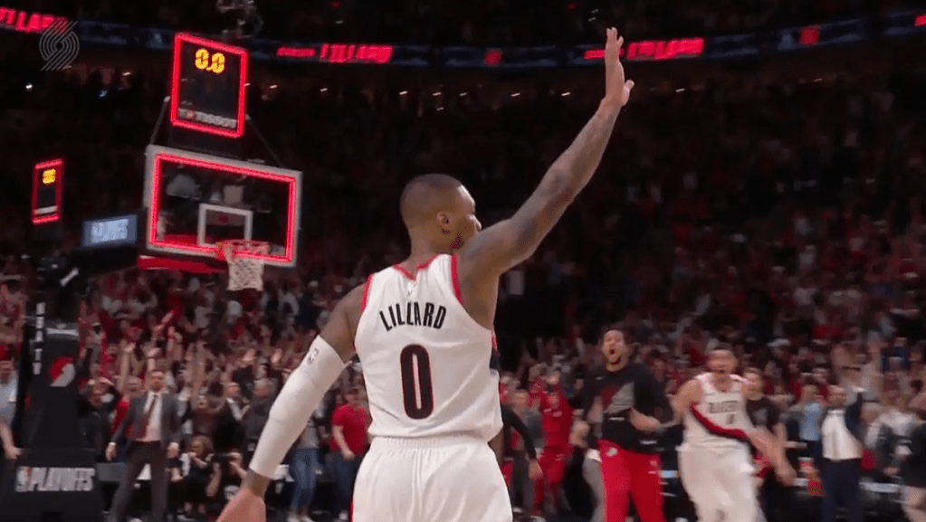 Maintenant passons à ce fameux shoot. Nous sommes au Moda Center de Portland pour le match 5 du 1er tour des Playoffs de 2019. Les Portland Trail Blazers (équipe de Damian Lillard) mènent la série 3-1 contre le Thunder d’Oklahoma City (équipe de Paul George). Durant tout le match, chaque équipe prend l’avantage puis le perd. À 18 secondes de la fin du match, le score est de 115 à 115. Russell Westbrook d’Oklahoma manque un double-pas pour prendre l’avantage et Aminu de Portland prend le rebond. Damian Lillard a le ballon au milieu du terrain et son défenseur reste éloigné pensant qu’il va attaquer. Il reste 9 secondes mais Lillard semble détendu et dribble tranquillement face à Paul George. Pendant 7 secondes, il reste à 11 mètres de l’arceau en faisant simplement passer le ballon de sa main droite à sa main gauche. Puis à 2,5 secondes de la fin, Lillard se décale rapidement sur sa droite et tire. Paul George, pensant qu’il est impossible qu’il marque, n’a pas vraiment défendu. Le ballon est en l’air, le stade retient son souffle et le buzzer retentit. Puis… le ballon rentre, le stade explose, les coéquipiers de Lillard sont euphoriques.